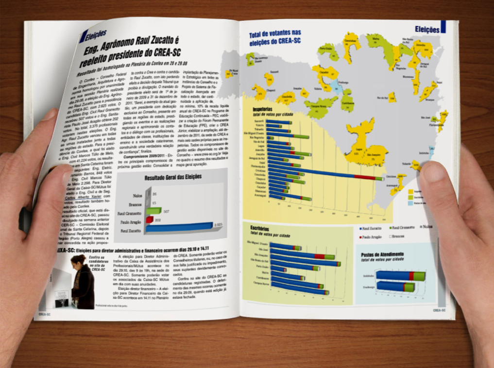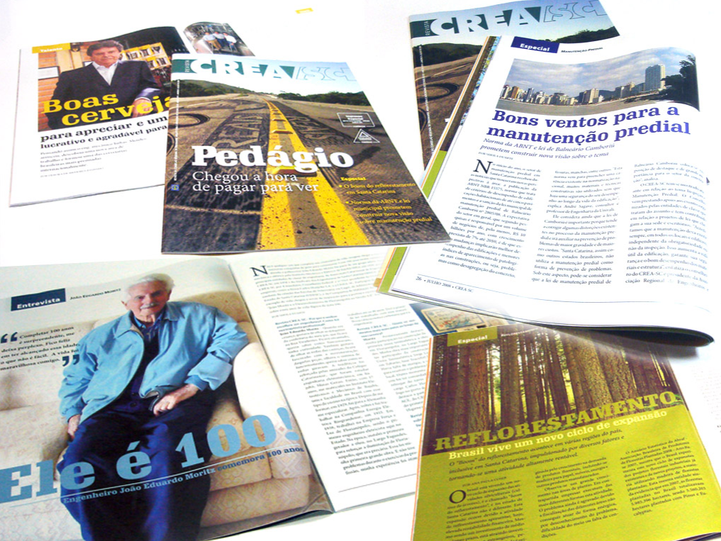 Projeto editorial e diagramação de informativos internos do Conselho Regional de Engenharia, Arquitetura e Agronomia - CREA-SC.